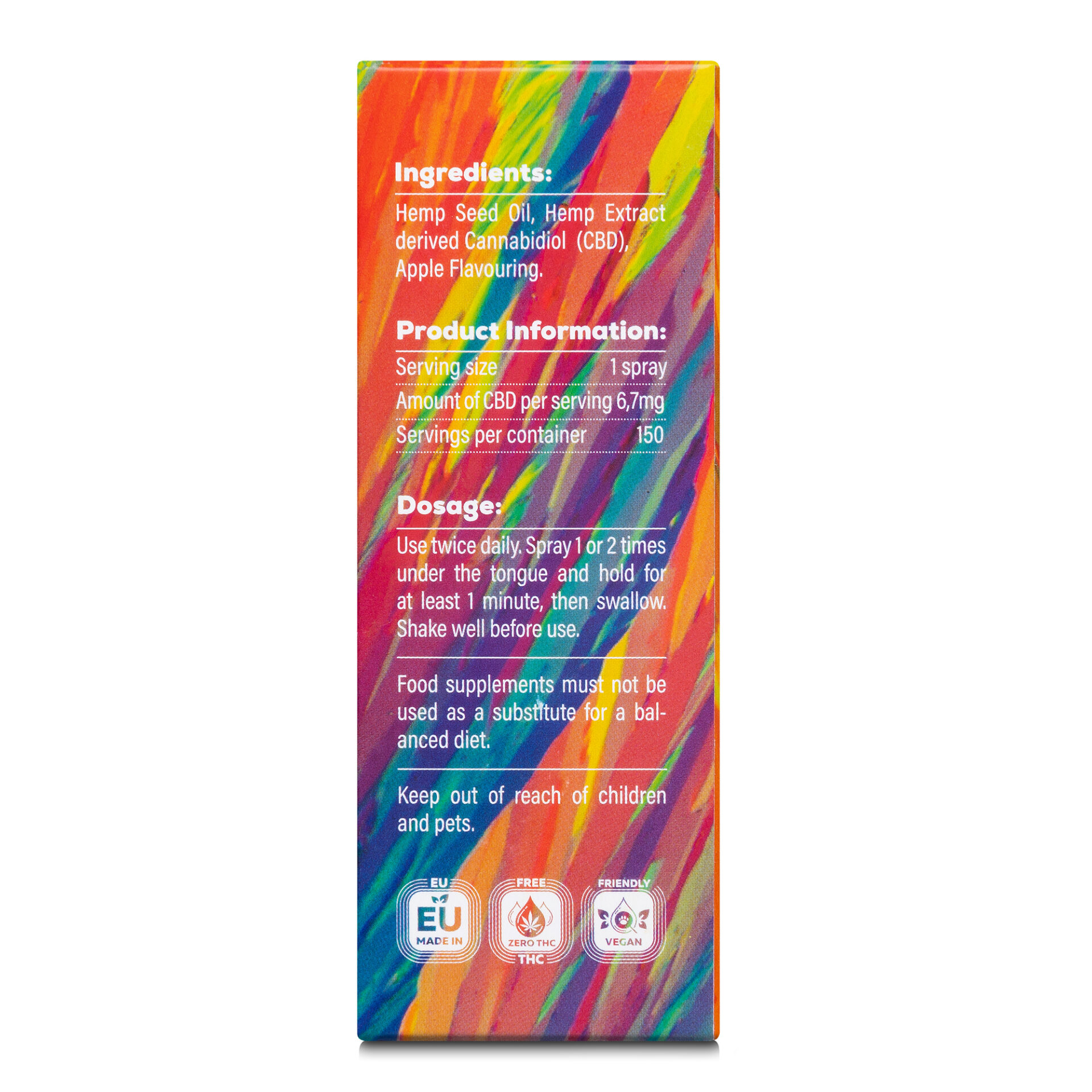 Ingrediente: extract de cânepă cu spectru larg (Cannabis sativa L), extract de măr și lămâie.